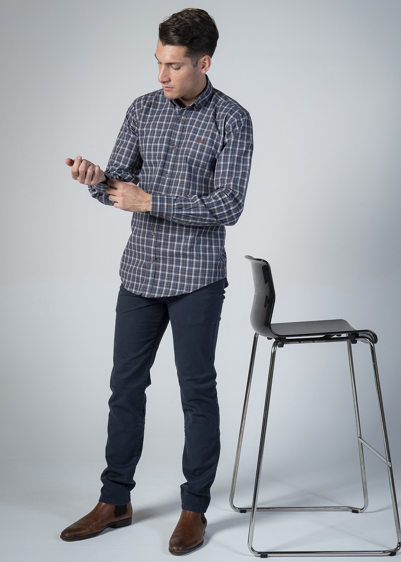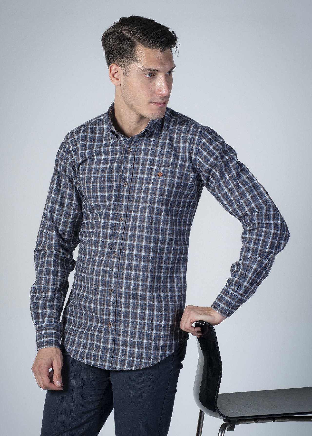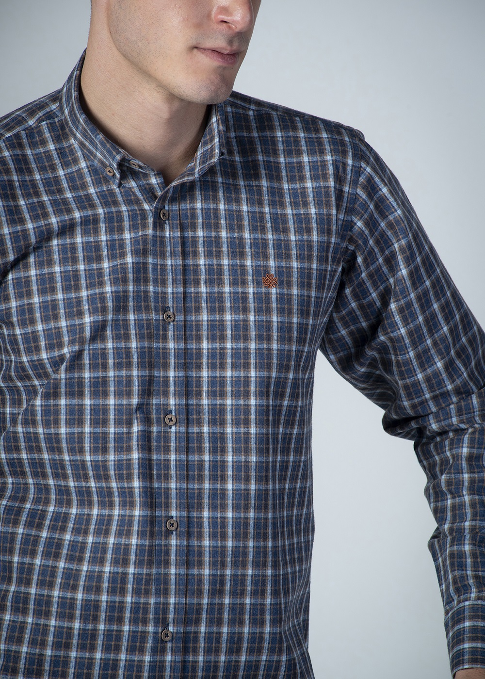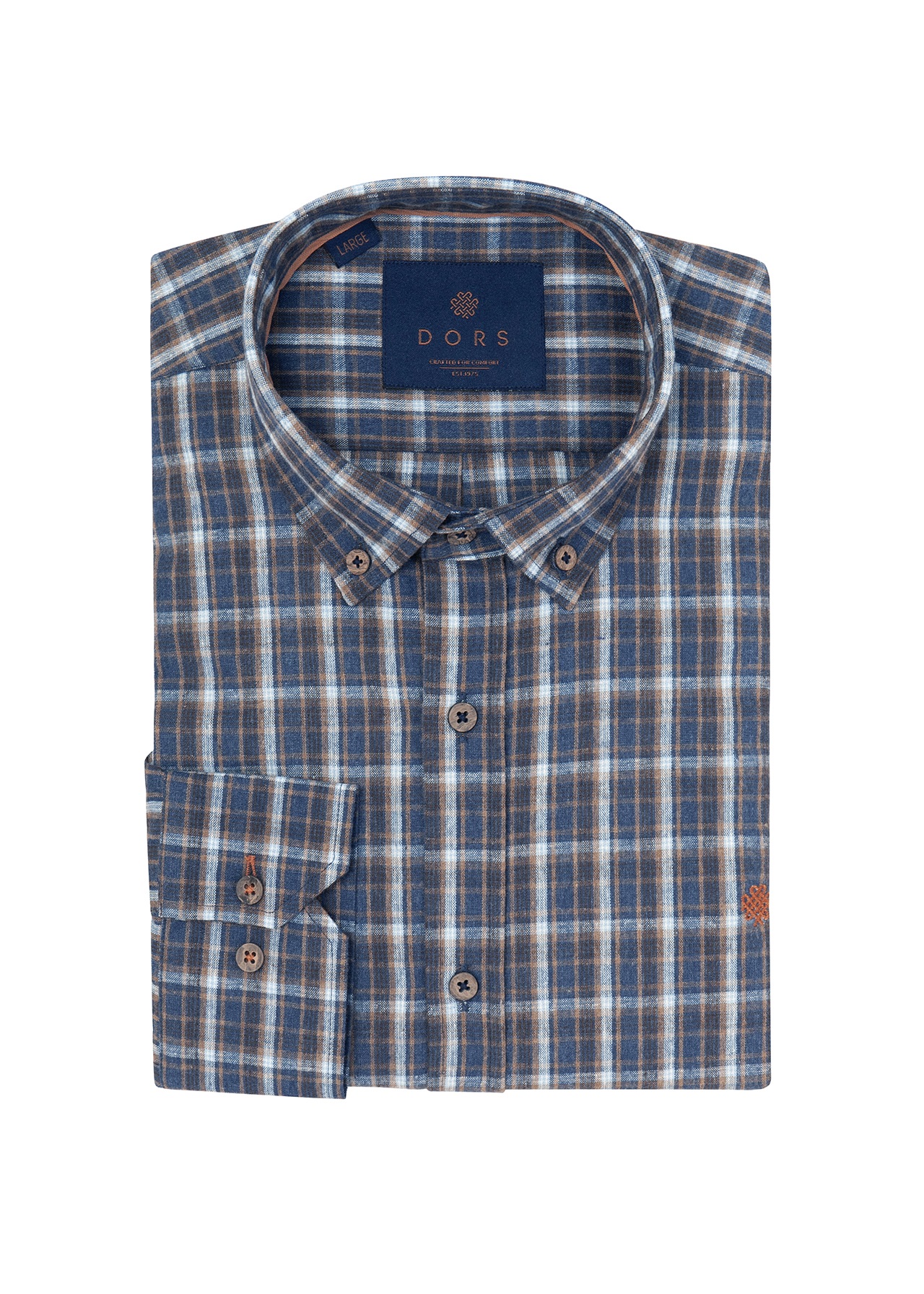 Dors 1035003 Ανδρικό Πουκάμισο Καρό Φανέλα Σε Κανονική Γραμμή Μπλε / Ταμπά